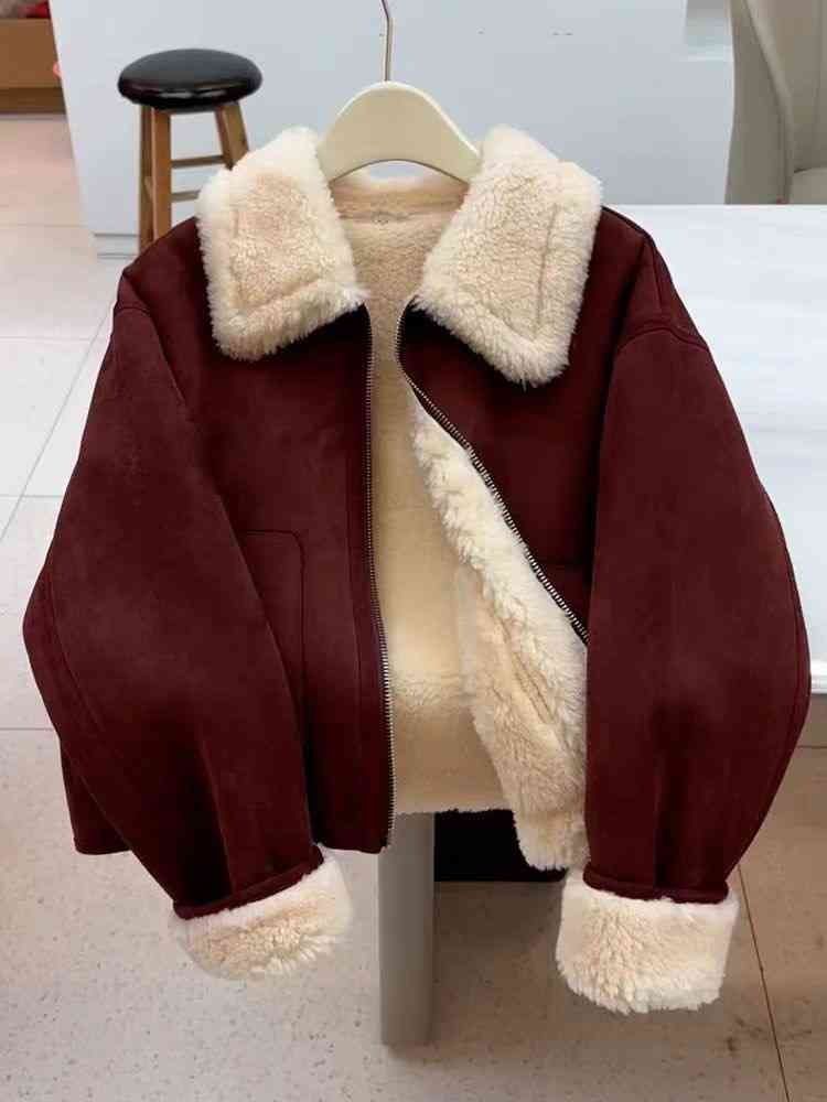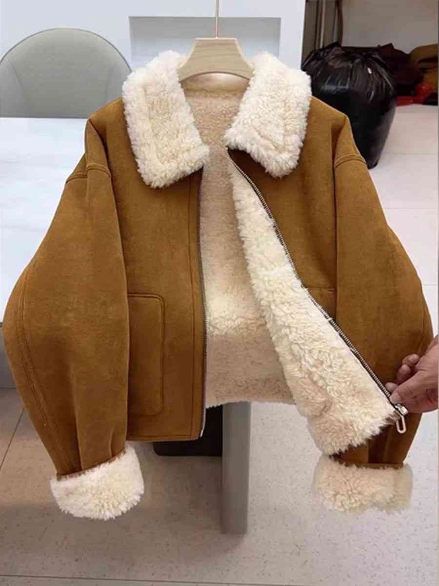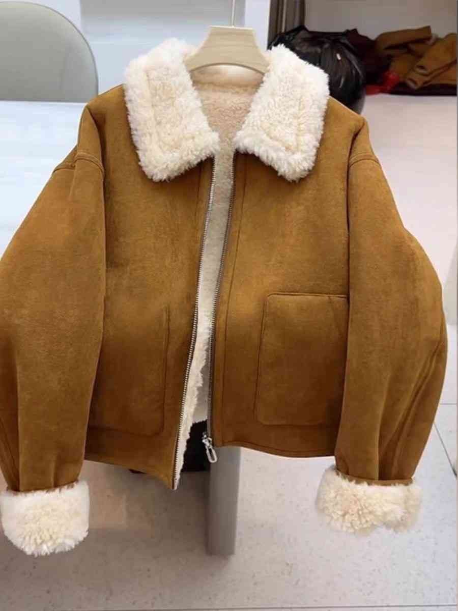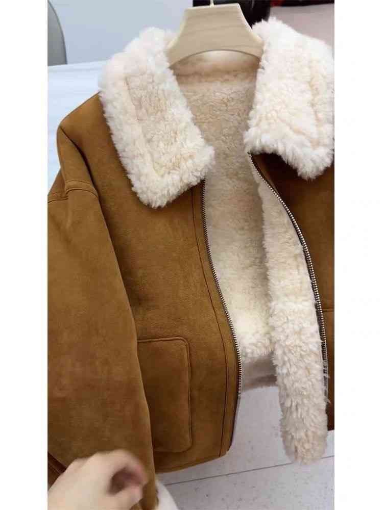 Autumn And Winter New Warm Thickened Imitation Lamb Wool Deerskin Velvet Leather Jacket