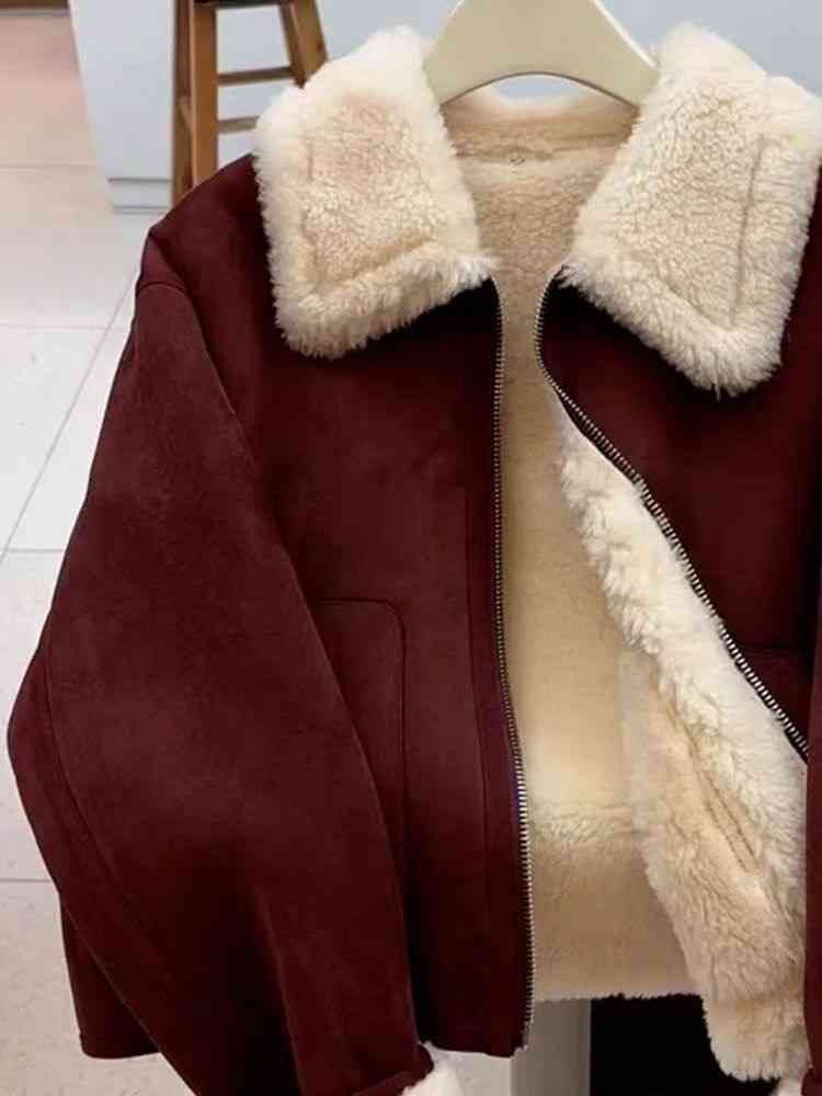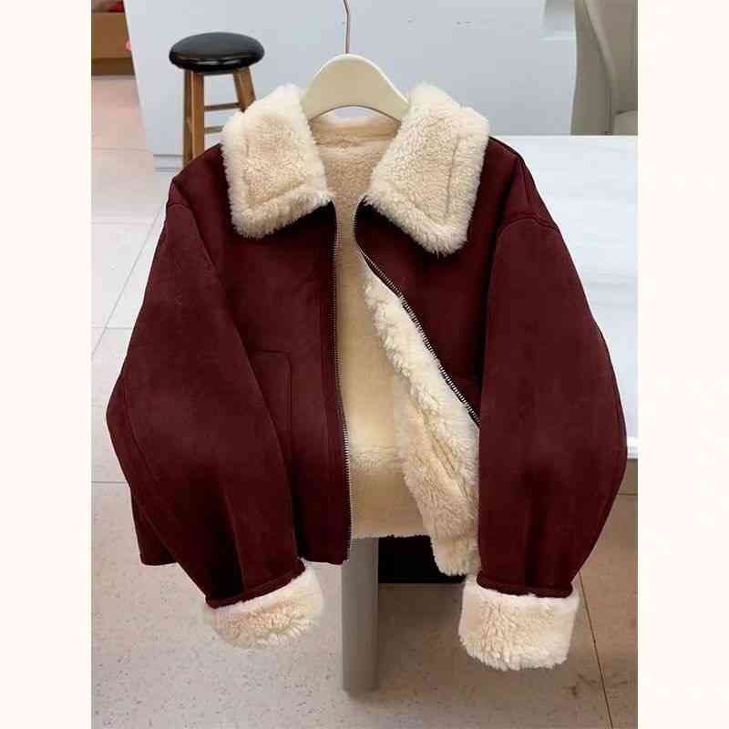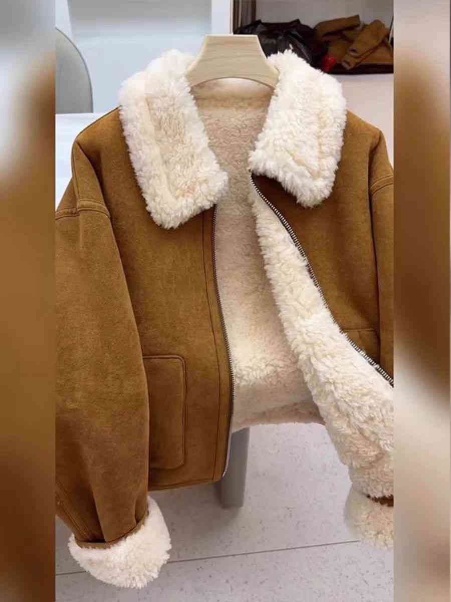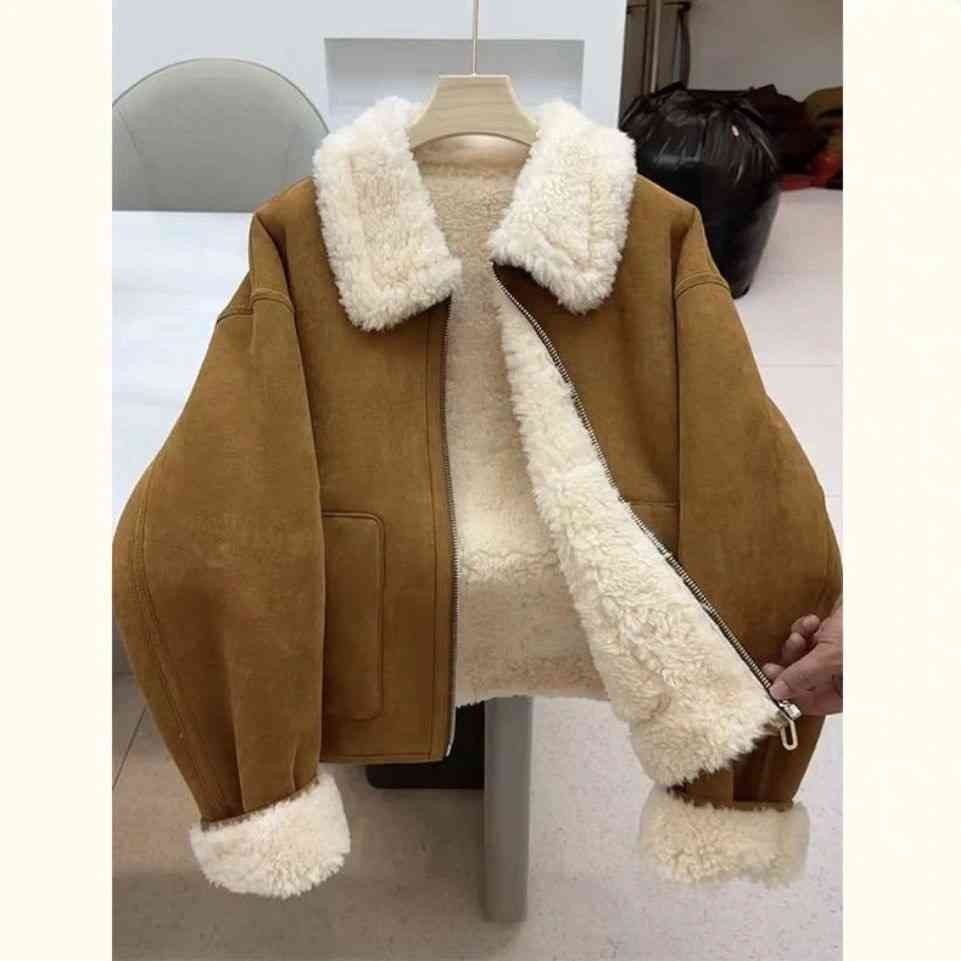 Autumn And Winter New Warm Thickened Imitation Lamb Wool Deerskin Velvet Leather Jacket