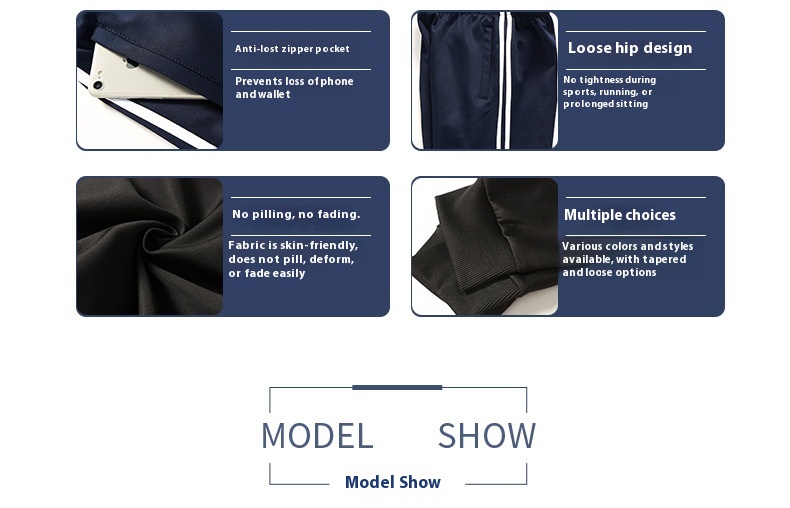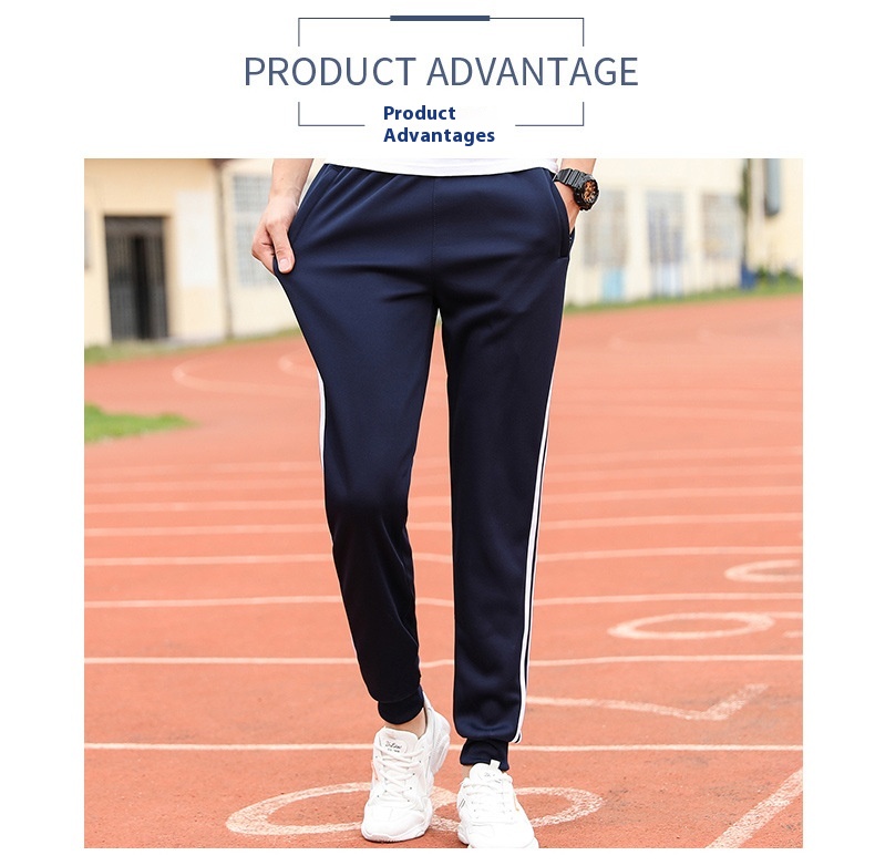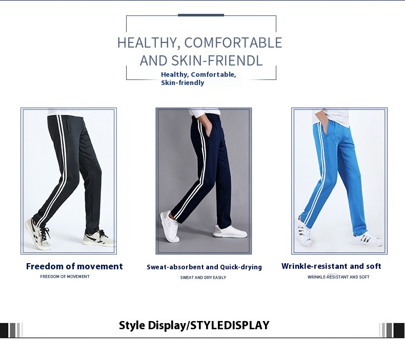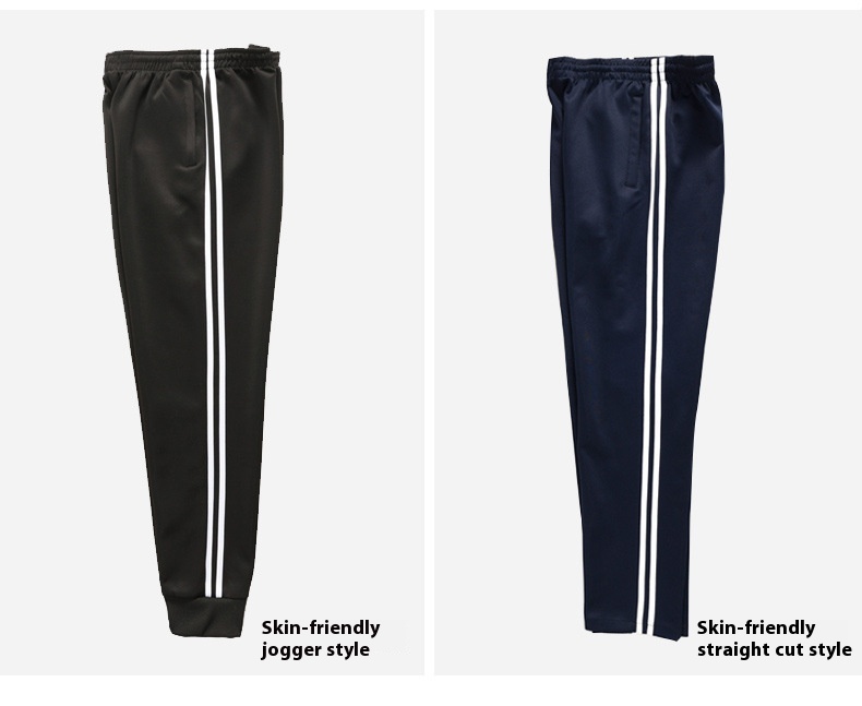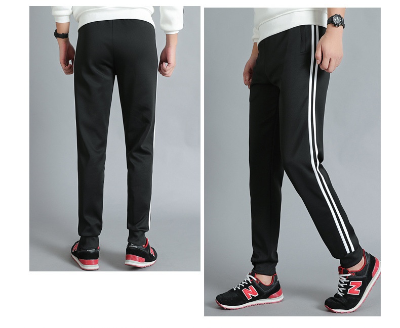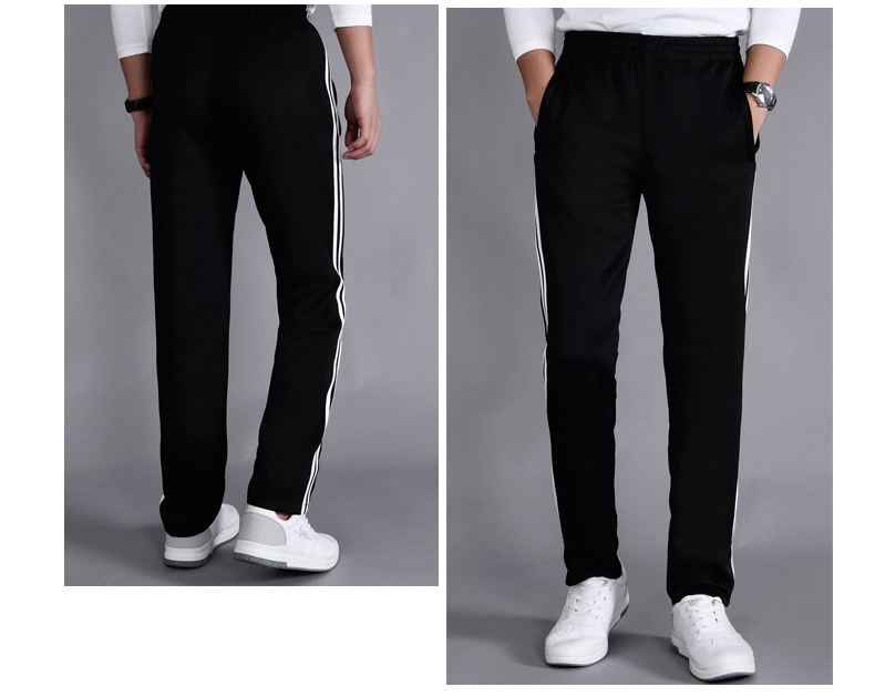 Color: Black two horizontal stripes [Spring and Autumn] straight-leg pants
